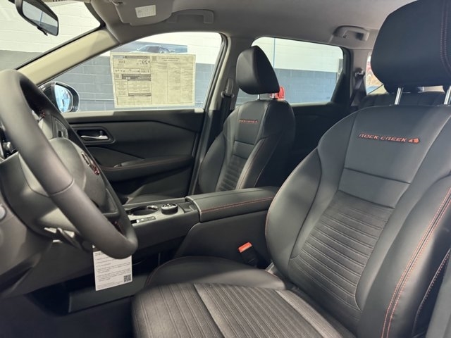 CHARCOAL LEATHERETTE & BALLISTIC NYLON SEATING W/CONTRAST STITCH & ROCK CREEK LOGO |