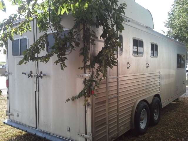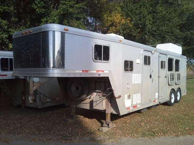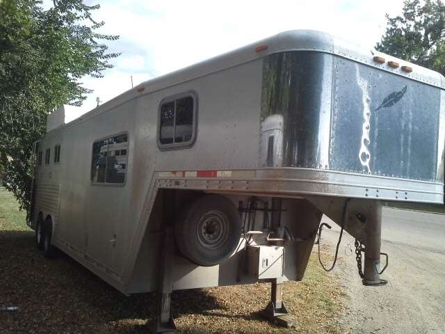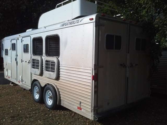 1998 FEATHERLITE GOOSENECK TRAILER WITH FRONT LIVING QUARTERS. REGULAR TITLE, SOME HAIL DAMAGE, NEW WHEELS AND TIRES, VIN# 4FGL02321WC105881