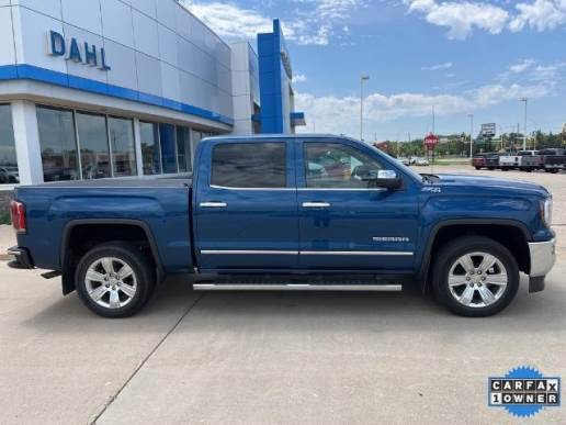 Recent Arrival! One Owner, Local Trade, Leather, Heated Seats, Cooled Seats, 8-Speed Automatic with Overdrive, 4WD, Cocoa/Dune Leather, 20 x 9 Polished Aluminum Wheels, 6 Rectangular Chromed Tubular Assist Steps, Bose Speaker System, Memory seat, SLT Premium Package. 2018 GMC Sierra 1500 SLT Odometer is 40141 miles below market average! Stone Blue Metallic.
