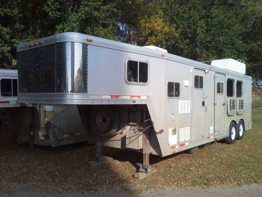 1998 FEATHERLITE GOOSENECK TRAILER WITH FRONT LIVING QUARTERS. REGULAR TITLE, SOME HAIL DAMAGE, NEW WHEELS AND TIRES, VIN# 4FGL02321WC105881