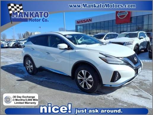 This vehicle is a 2023 Nissan Murano S SUV all wheel drive with 12,374 miles. It is equipped with a 3.5 liter 6 cylinder engine and sequential port fuel injection, providing optimal performance and efficiency. The pearl white tri exterior of this motorcar is accented by a graphite g interior, giving it a sleek and modern look. It has a fuel economy of 20 mpg in the city and 28 mpg on the highway, making it an ideal choice for those who want to save money on gas. Additionally, this motorcar has been awarded with a 5 out of 5 stars crash test rating, making it one of the safest vehicles on the road today. Safety features include blind spot sensor, and hill start assist, as well as on demand four wheel drive for added convenience. This motorcar is sure to make any driver feel safe and secure while on the road. We have been voted Mankato`s #1 place to purchase a New or Used Car since 2013. We are the most positive reviewed dealer in the area. Our mission statement is simple: To be so effective we are able to be helpful to others. Call or stop by today and see the difference. Nice! Just Ask Around.